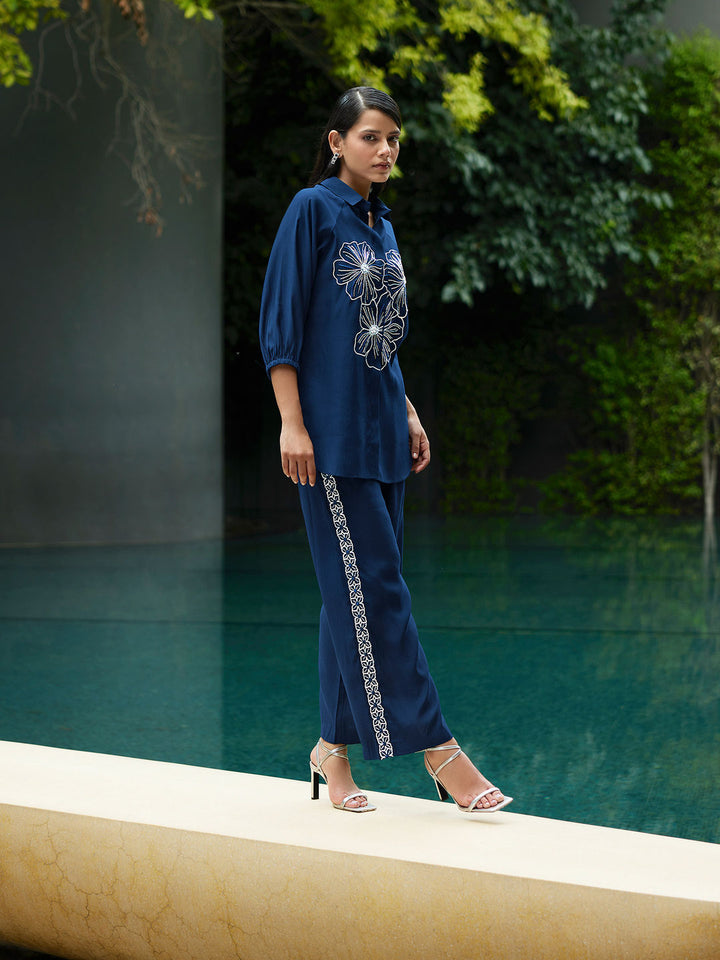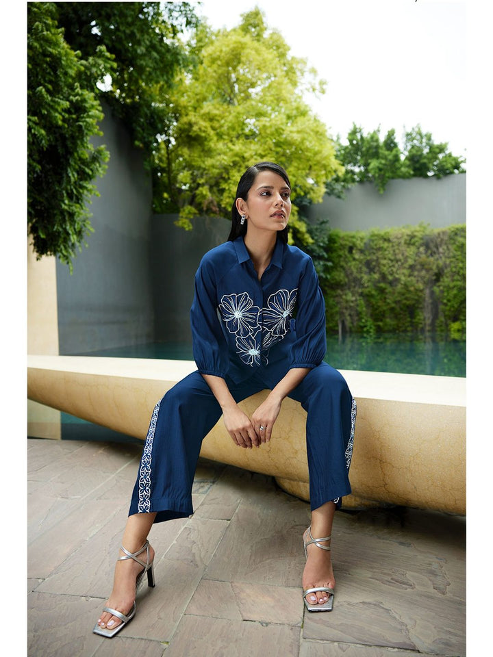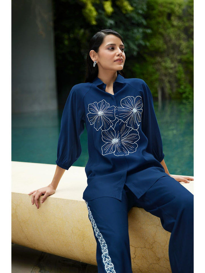 Kiaa-Deep Blue Embroidered- Sequined Co-ord (Set of 2)