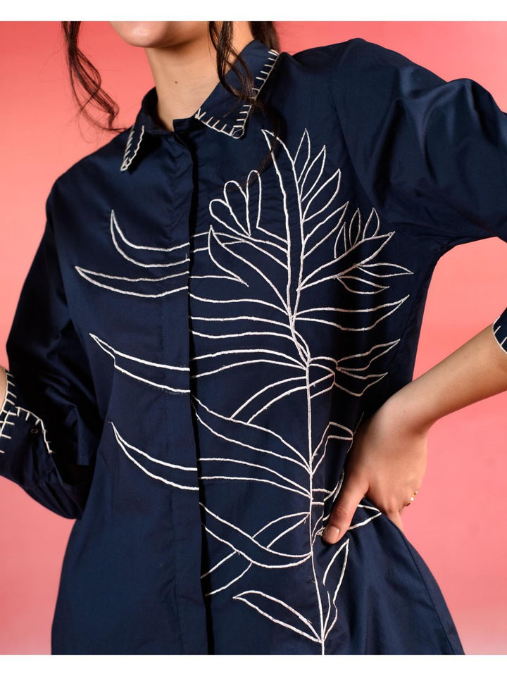 Navy Blue Embroidered Blue Poplin Co-Ord (Set of 2)