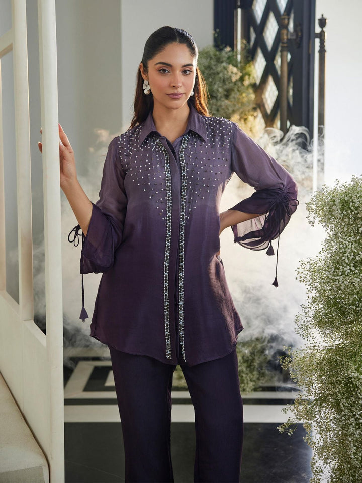 Plum Pearl-Embellished Co-Ord Set - Purple