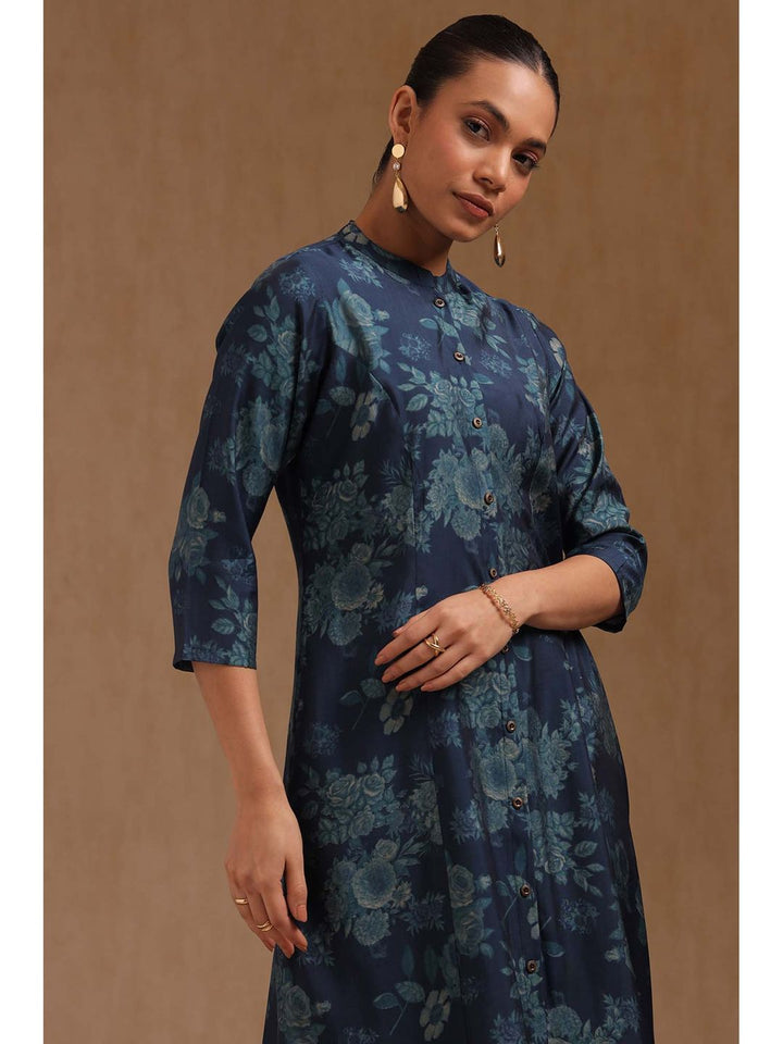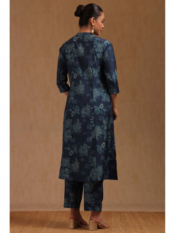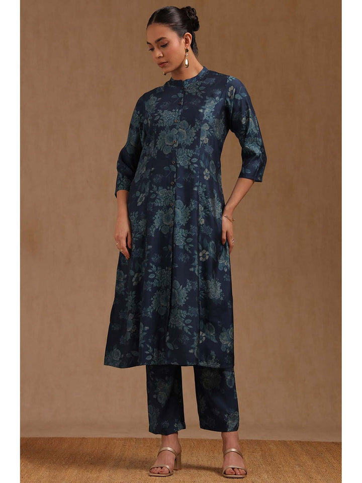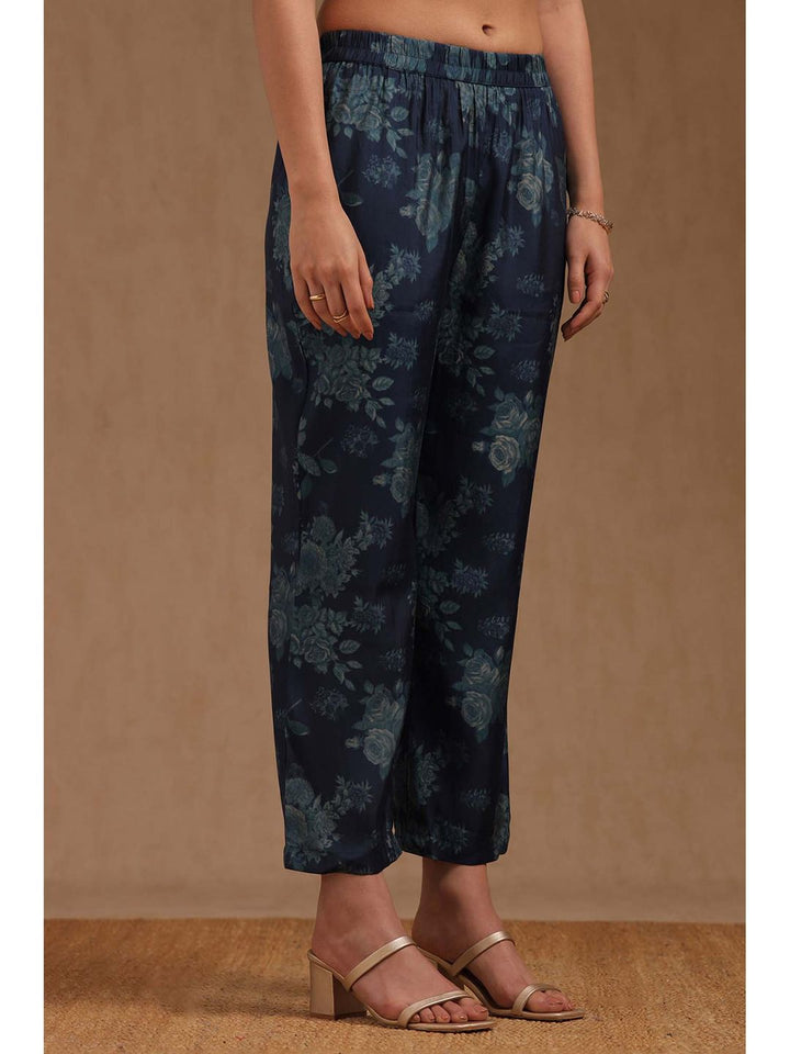 Womens Navy Blue Muslin Floral Print Co-Ord